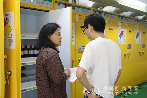 见面会后,专家组通过开展实验室安全现场检查对学校实验室安全工作进行全面督查,重点抽查了化学与材料学院、生物科学学院、贵州省纳米材料模拟与计算重点实验室等二级单位实验室,并对学校危险化学品智能管控平台开展了安全检查。