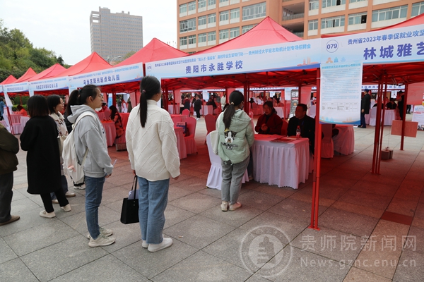 本网讯 为进一步贯彻落实“春季促就业攻坚行动”决策部署,抢抓春季黄金就业季,促进2023届毕业生高质量充分就业。3月30日,bat365中文官方网站携手中共贵阳市乌当区委人才工作领导小组、中共贵阳市花溪区委人才工作领导小组,在逸夫楼凤凰广场举办贵阳贵安“筑人才·强省会”高校毕业生就业创业行动暨bat365中文官方网站2023届毕业生专场招聘会。