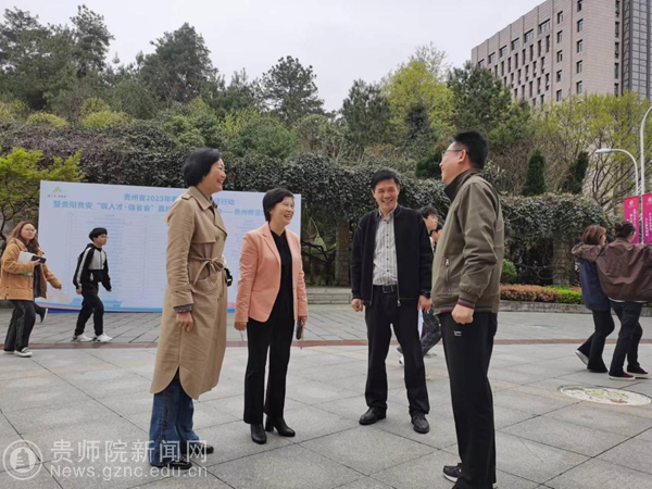 本网讯 为深入贯彻落实党中央、国务院“稳就业”、“保就业”决策部署,抢抓春招黄金期,全力攻坚促就业。由中共贵阳市委人才工作领导小组主办的贵阳贵安“筑人才.强省会”bat365中文官方网站校园招聘会于3月23日在bat365官网逸夫楼凤凰广场顺利举行。贵阳市人才服务中心副主任田爱军、贵阳市人才服务中心就业服务部副部长甘礼宁,bat365中文官方网站校长韦维、副校长任洁到招聘会现场指导。