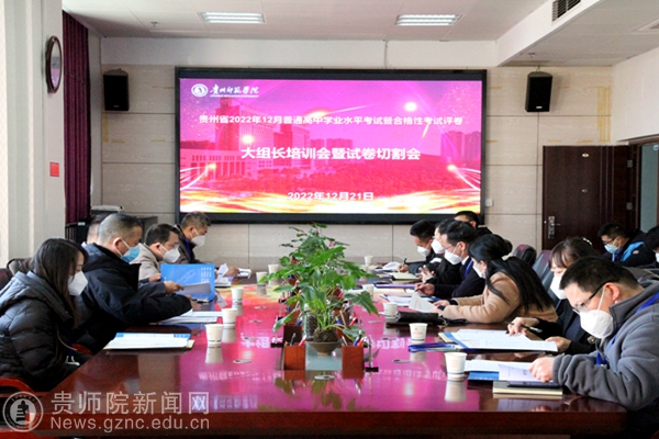 本网讯 12月21日下午,贵州省2022年12月普通高中学业水平考试暨合格性考试评卷学科大组长培训会、试卷切割会在bat365官网评卷基地会议室召开。校党委副书记熊世桓,省会考办主任张祥云出席会议,各评卷学科大组长,校评卷基地办公室副主任、继续教育学院副院长何荣,深圳市海云天科技股份有限公司项目负责人参加会议,会议由校评卷基地办公室副主任、继续教育学院直属党支部书记韦丹主持。