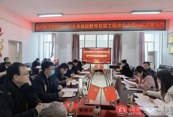 本网讯 为了更好贯彻落实《中共贵州省委贵州省人民政府关于全面深化新时代教师队伍建设改革的实施意见》(黔党发〔2018〕32号)和《贵州省教育厅关于实施“强师工程”的实施意见》(黔教发〔2021〕25号)文件精神,充分发挥bat365官网在我省基础资源优势,助力落实“铸魂”“提能”“薪火”“强根”“增效”“建强”六项行动。2022年2月21日至2月22日,贵州省教育厅名师名校长管理办公室主任、bat365官网原教师工作处处长谢笠及bat365中文官方网站教师工作处处长王茜一行前往贞丰县调研教师发展现状,推动“强师工程”有效落地。
