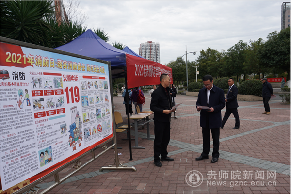 保卫处蒋江南处长在现场为广大师生详细讲解消防安全知识,呼吁师生关注消防,关爱生命。