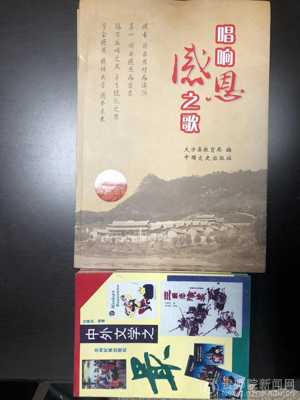 大方县教育局退休干部包顺武捐赠了他的两部著作《中外文学之最》《唱响感恩之歌》共9本。