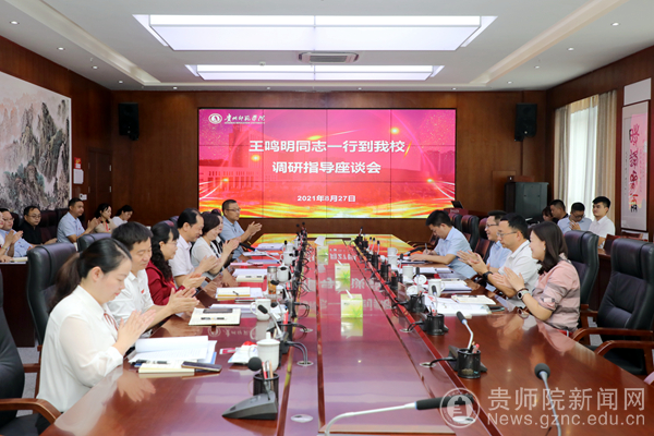 本网讯 8月27日,乌当区区委书记王鸣明莅临bat365官网调研座谈,座谈会在信息楼二楼会议室召开,乌当区副区长王飞、乌当区区委办副主任刘承俊、乌当区教育局局长梁艳参加座谈会。校党委书记石培新、校长韦维、校党委副书记郭文、副校长邹晓青等在家校领导及党委委员出席座谈会,座谈会由石培新主持。