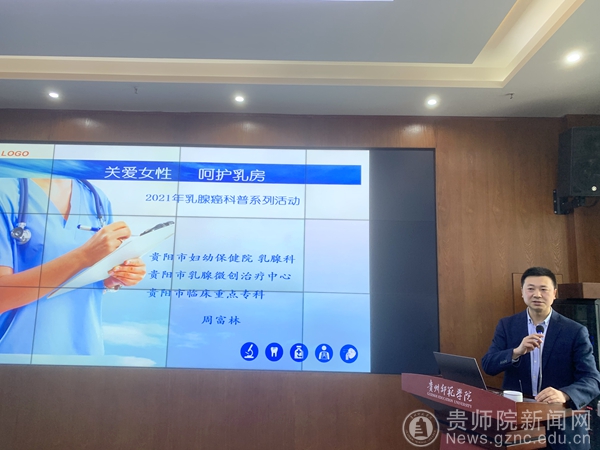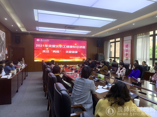 本网讯 为深入开展党史学习教育,将党史学习教育成效转化为“为民办实事”的成效,按照党史学习教育与省委“牢记殷切嘱托、忠诚干净担当、喜迎建党百年”专题教育活动要求, 围绕全省女职工“巾帼学党史 奋进新征程”系列活动的开展,为了广泛普及女性健康知识,积极倡导科学预防理念、让广大女性增强自我保健意识,引导女职工树立正确的健康观念和生活理念,着力提升女职工的获得感、幸福感和安全感。4月15日下午,bat365官网在信息楼二楼会议室举办2021年关爱女职工健康知识公益讲座,讲座由历史与档案学院党委书记、女工委员会主任吴靖霞主持,特邀贵阳市妇幼保健院妇瘤科主任汪俊涛、乳腺科副主任周福林进行主讲,共80余名教职工参加此次活动。