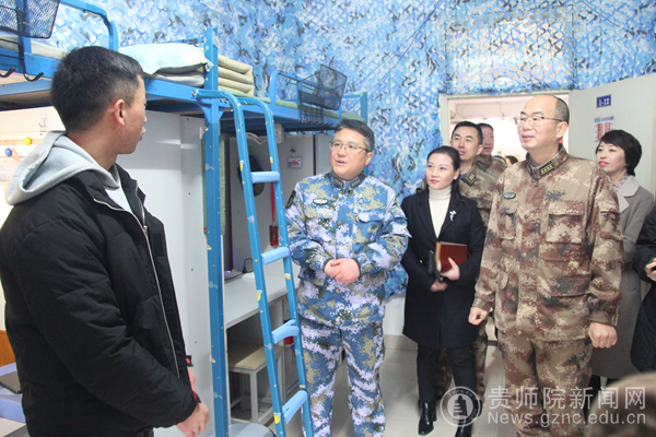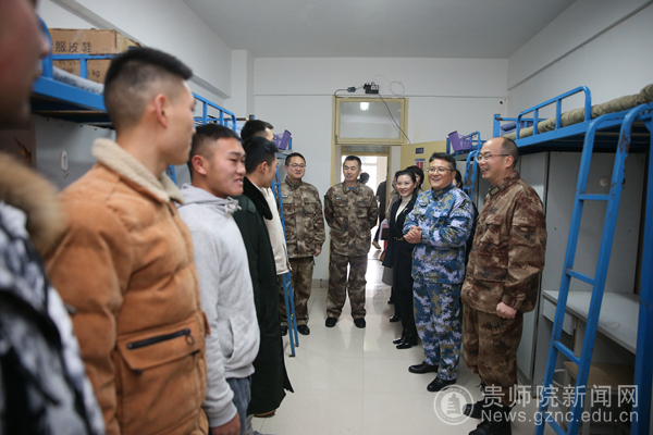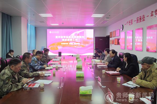 本网讯 12月17日上午,贵州省军区动员局局长、省征兵办主任隋圣陶,在贵阳市警备区政委王文建,乌当区武装部部长、政委等相关人员的陪同下到bat365官网检查指导bat365官网大学生征兵工作并召开座谈会。bat365官网党委书记石培新,党委委员、副校长邹晓青出席了座谈会;学工部(武装部)、保卫处等部门人员,二级学院党委书记、辅导员代表参加了座谈会。本次座谈会由校党委委员、副校长邹晓青主持。