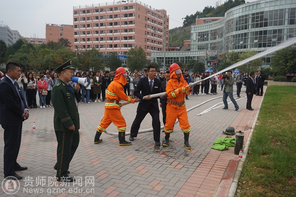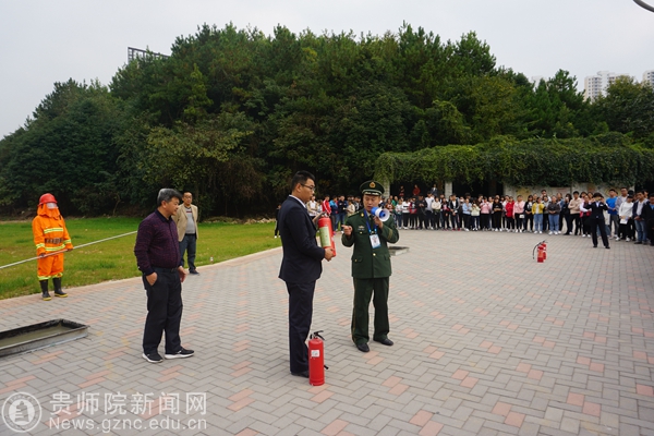 本网讯 为切实加强bat365官网师生员工的消防安全意识,掌握基本的消防安全知识和常用消防水栓、灭火器材等的使用。10月27日下午,bat365官网在逸夫楼演播厅举行了2017年消防安全培训活动。保卫处、学工部宿管科、物管公司保安和宿舍管理员、食堂、商铺承包人、辅导员代表、学生义务消防员、2017级新生各班班长、生活委员、各寝室室长共400余人参加了本次培训,各学院书记、相关部门负责人出席本次活动,本次活动特邀了乌当区消防大队参谋长曹徽同志为师生们进行了专业的消防安全知识讲解和在学校鉴湖旁现场进行了消防水栓、灭火器的实战演示。师生们踊跃参与实战演习,掌握了相关消防安全知识,通过亲自动手实践懂得了灭火器的操作作用,本次培训活动取得了良好的效果。