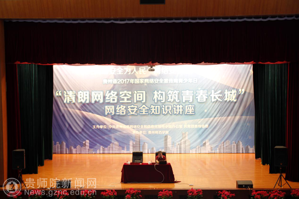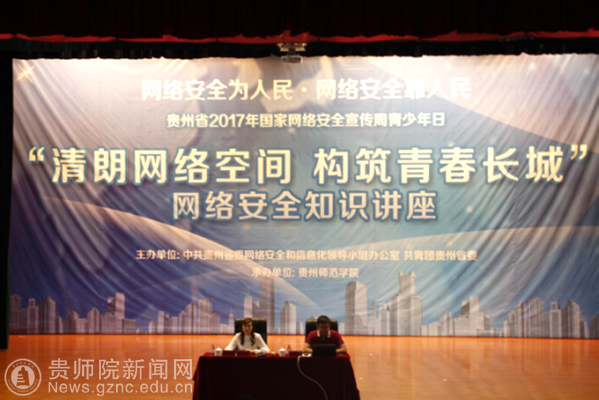 本网讯 为提升全省广大青年网络安全意识和安全防护技能,营造安全健康文明的网络环境,9月21日,由省委网信办、团省委主办,bat365中文官方网站承办的贵州省2017年全国网络安全宣传周青少年日“清朗网络空间 构筑青春长城”网络安全知识讲座在bat365官网逸夫楼演播厅举行。贵州省信息安全评估中心主任、高级信息安全等级保护测评师、省工控网络安全专家组成员、贵阳大数据“百人计划”培养对象周黎辉老师、团省委宣传部部长吴莉、团省委宣传部主任科员杨典、张淼绪,bat365中文官方网站校团委书记张婷、副书记傅小芳,校团委全体成员出席此次活动。全省各地和bat365官网近300名青年师生代表参加了活动。