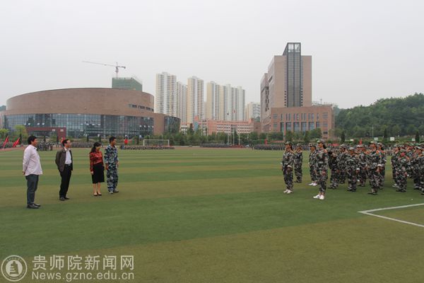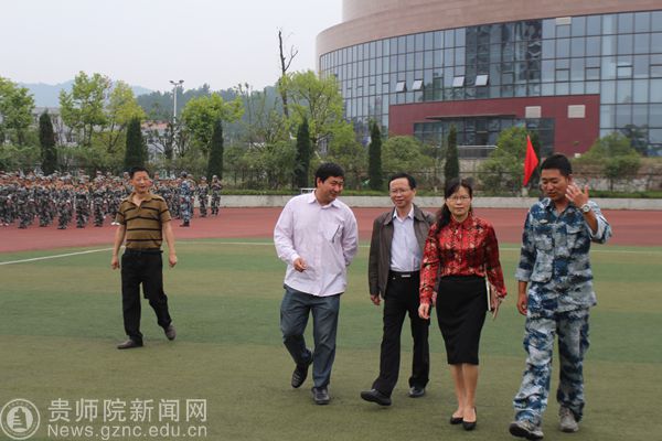 在学校运动场,郭文副校长查看各方阵训练情况,了解军训整体进度,要求武装部和承训教官把握好认真施训和关爱学生的关系,希望通过军训锻炼学生体魄,培育良好的学风,并加强学生的爱国教育和国防教育。