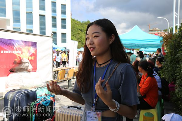 外国语学院迎新负责人向玉梅接受采访