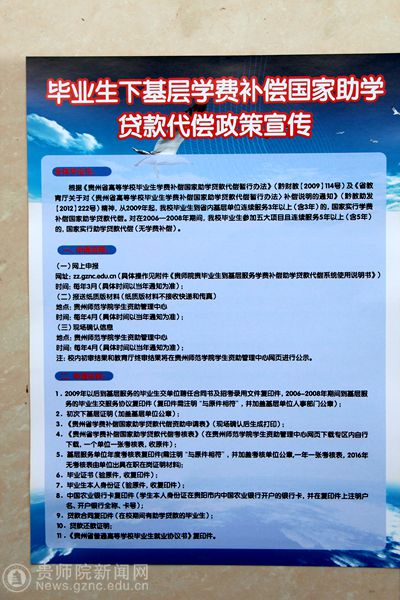 按照贵州省脱贫攻坚相关政策要求,我省毕业生到我省偏远地区基层服务就业满3年的,可以申请学费补偿国家助学贷款代偿,申请受理单位为原毕业学校,审核单位为省教育厅、省财政厅、省扶贫办等部门。所以,三年后,我们很多今天毕业离校的学生将重新踏入母校的怀抱。我们期待再见的那天。
