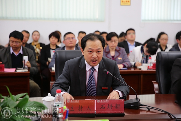 校党委书记石培新首先致欢迎词。校长李存雄主要从加快发展成绩显著、党的建设全面加强两个方面汇报了bat365官网2016年度加快发展目标绩效的完成情况。在加快发展成绩显著方面,bat365官网的发展思路进一步明晰,正式发布《“十三五”改革和发展规划》(《总规》);学科专业布局进一步优化,顺利获批硕士学位授予立项建设单位;教学质量进一步提高,科研和服务社会能力进一步增强,人才队伍建设进一步加强,开放办学进一步拓展,创新创业教育进一步深化,bat365官网被遴选为首批省级深化改革创新示范高校。在党的建设全面加强,bat365官网“两学一做”学习教育见实效,一是理论学习全覆盖,周密制定学习教育实施方案;二是发挥作用全方位,年初,启动“亮牌行动”,年底,对标“四个合格”对发挥作用情况进行检查考核;三是精准扶贫全参与,建立了全员参与,上下联动的“1+1+N”集团帮扶模式。基层党建工作2016年也见到了实效,一是思政工作有抓手,充分利用“基层党委书记上讲堂”,“师院大讲堂”等平台,加强理论学习;二是组织建设有举措;三是队伍建设有力度;四是廉政有实招,以“廉政文化进校园示范点”建设为契机,加强阵地建设,有力地推动了学校各项事业的发展。