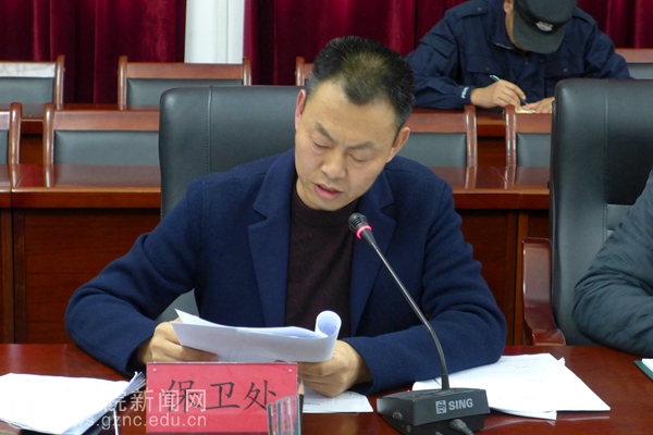 会议首先由学校保卫处处长蒋江南传达了省委省政府、省教育厅近期下发的一系列安全稳定工作文件精神进行了传达,随后学校学工部、学校资助管理中心负责人分别进行了交流发言。