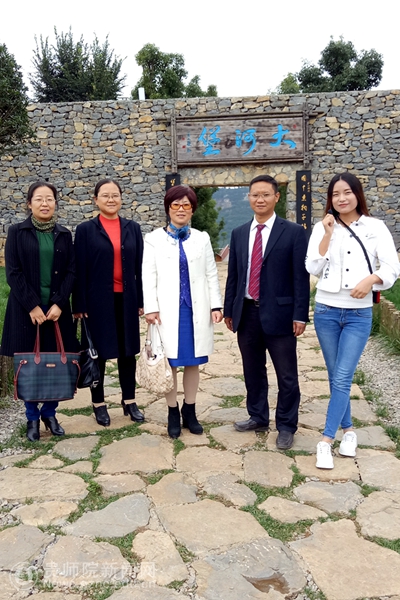 bat365官网实习学生为校领导介绍大河堡景点