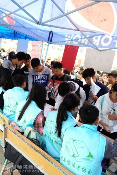 本网讯 炎热的夏天已经过去,bat365中文官方网站的新希望伴随金色秋天而来,给各社团的发展带来了新的希望。10月10日,在校团委的统一安排下,bat365中文官方网站图书馆读者协会在鉴湖旁举行了一年一度的招新活动。招新于早上八点半正式开始。