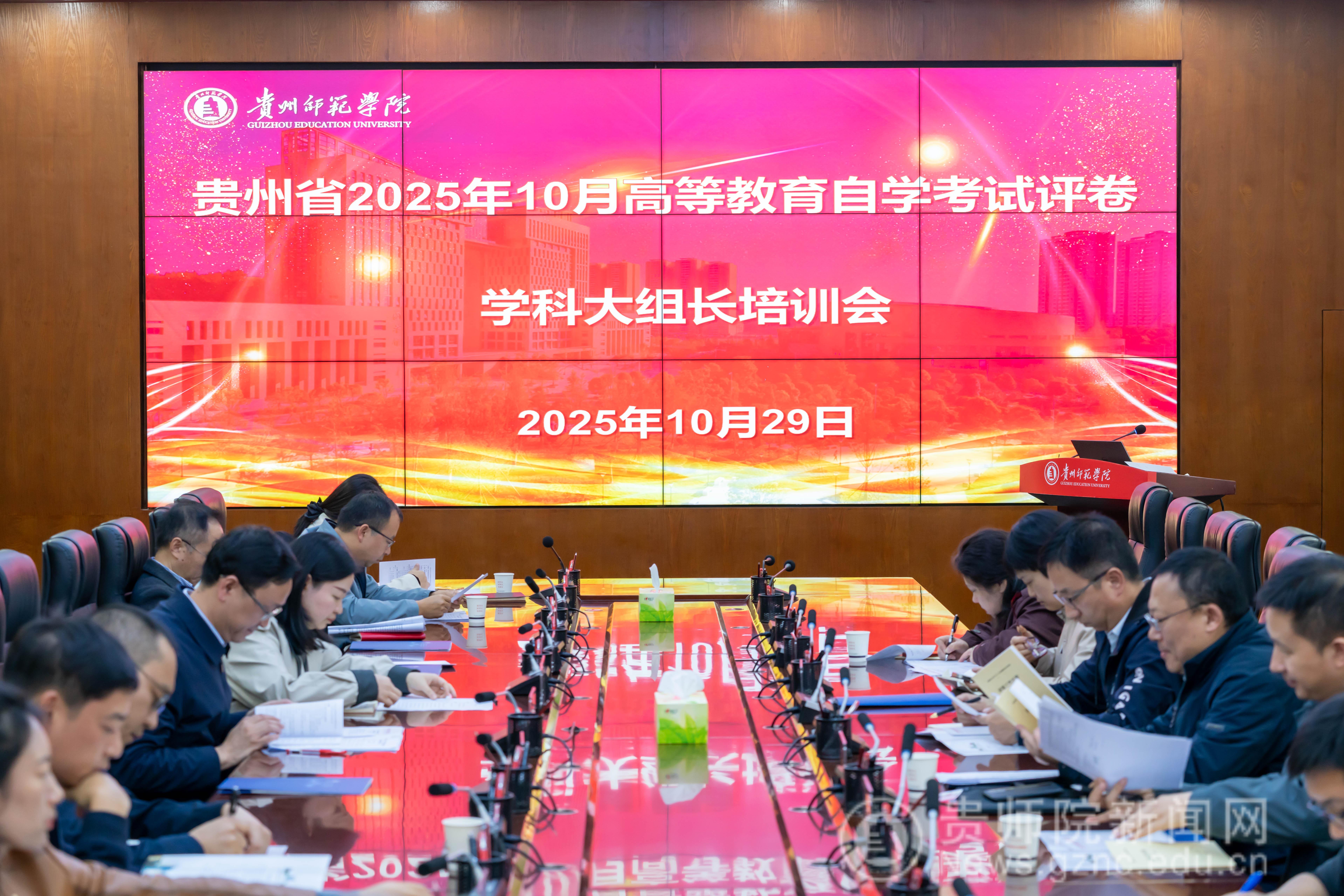 本网讯 10月29日下午,贵州省2025年10月高等教育自学考试评卷试卷切割会暨学科大组长培训会在bat365官网召开。省招生考试院党委委员、副院长黄克勇,bat365中文官方网站党委常委、副校长潘运出席会议,高等教育自学考试处处长张果、各评卷学科大组长、评卷技术公司项目负责人以及校评卷基地全体人员参加会议。会议由校评卷基地办公室主任、继续教育学院院长张婷主持。