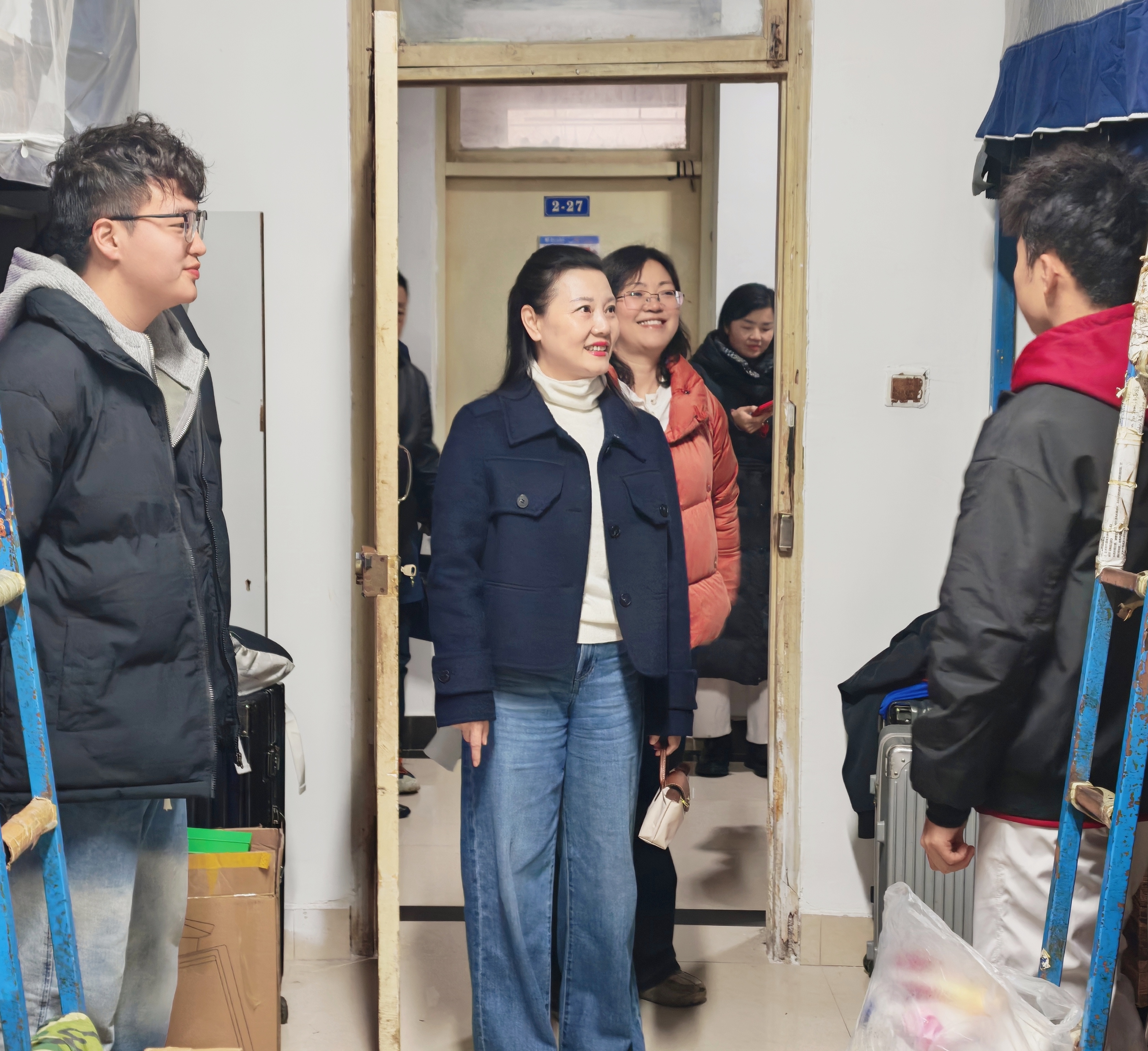 本网讯 新春伊始,万象更新。为深入了解同学们返校后的学习生活状况,传递学校关怀,筑牢校园安全防线,近日,校党委副书记邹晓青带领学工部部门负责人、各学院负责人及辅导员,深入学生宿舍走访慰问,与学子面对面交流、心贴心沟通,为新学期开启暖心序幕。