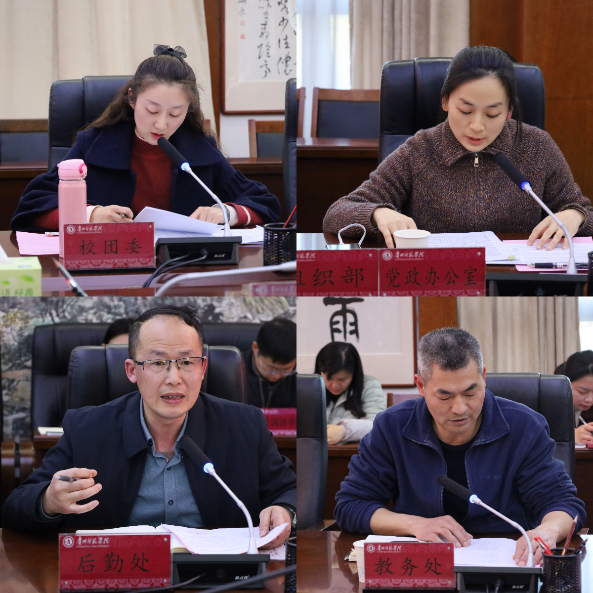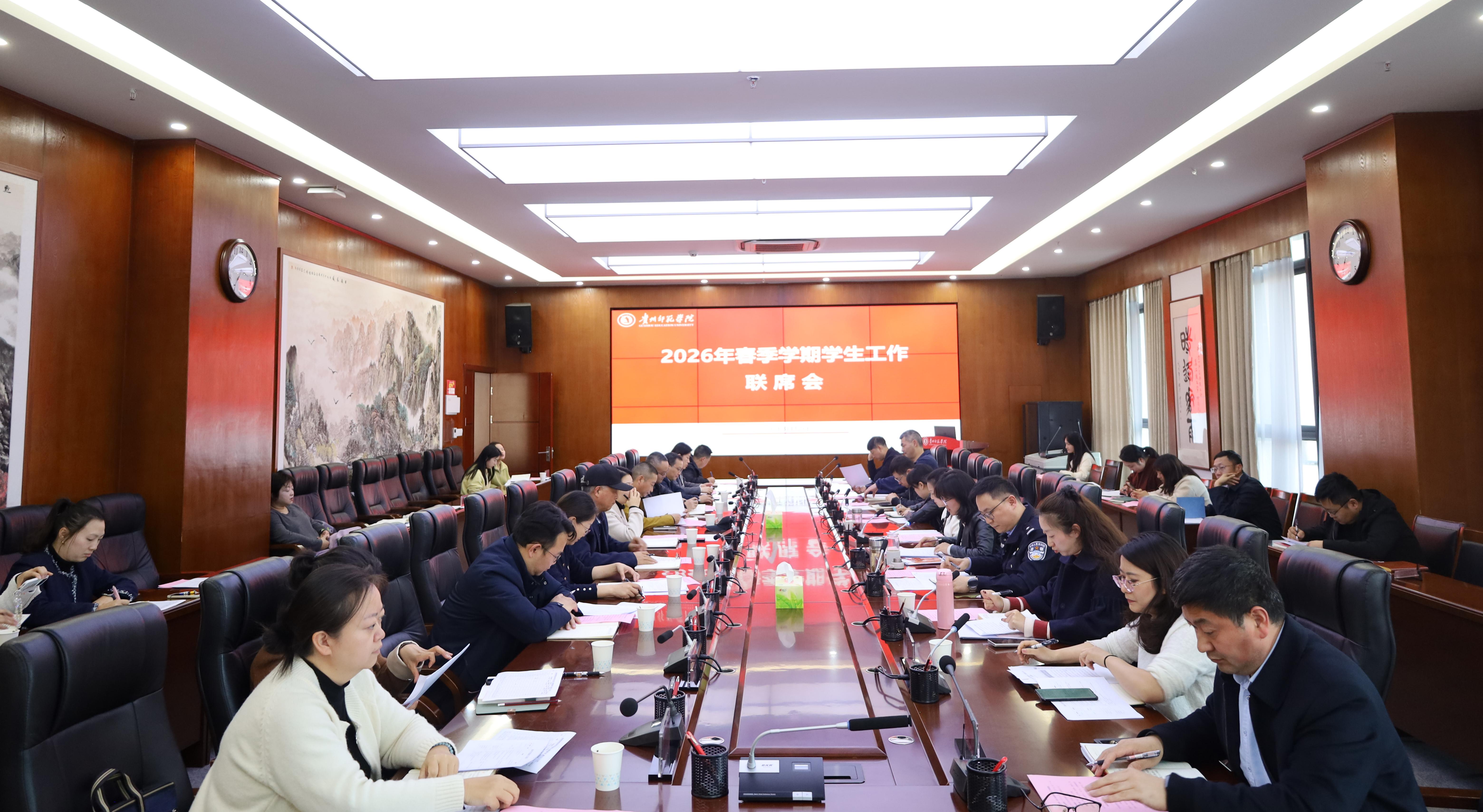 会上,学工部部长何毅介绍2026年度学生教育管理与学风建设重点工作及“一站式”学生社区综合管理模式建设工作安排;组织部、校团委、后勤处、教务处、招生就业指导处、学生资助管理中心、保卫处、心理健康教育与咨询中心、高新路派出所,商学院、化学与材料学院结合工作,分别作了本学期重点工作安排及工作交流。