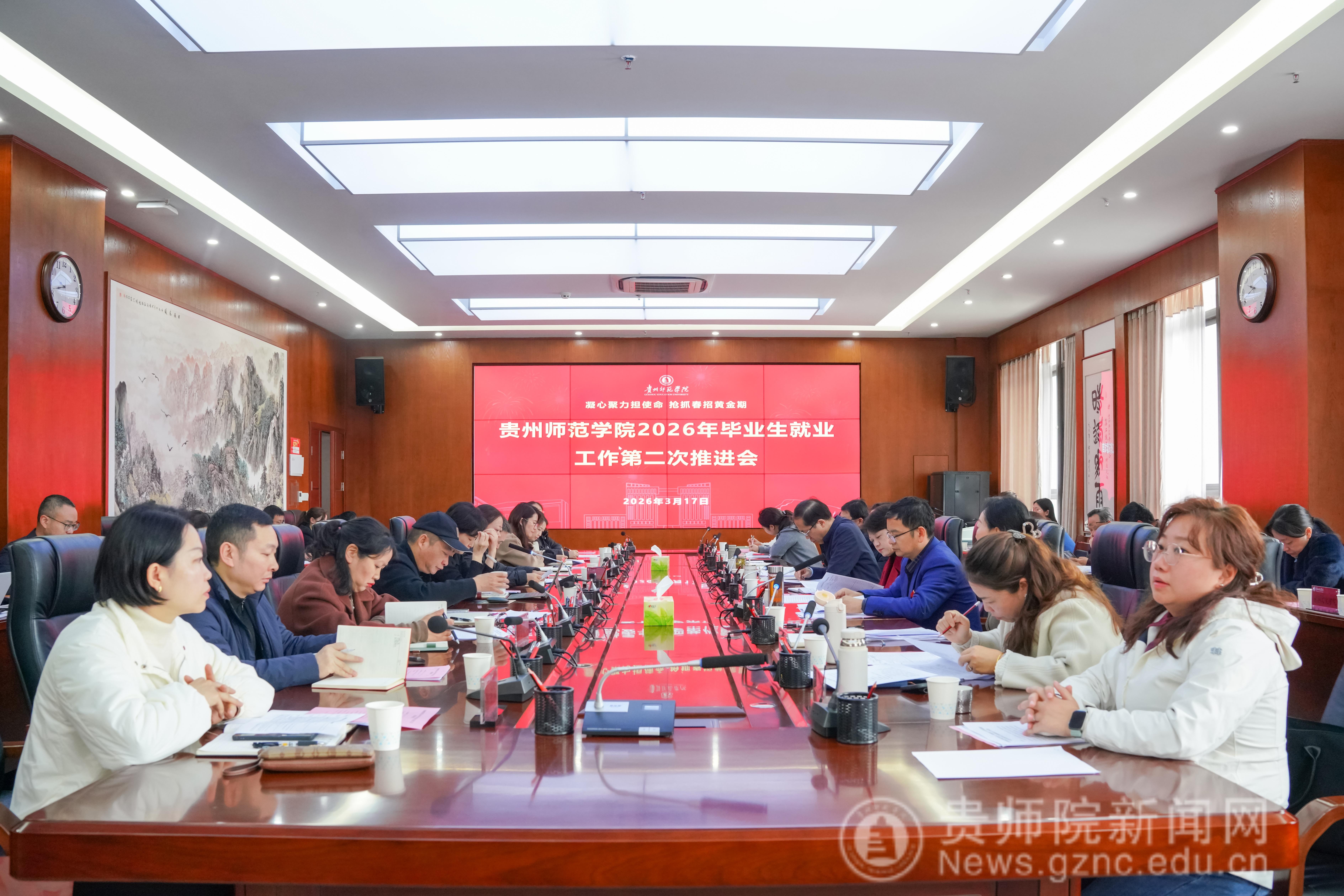 本网讯 为深入贯彻落实习近平总书记关于做好高校毕业生就业的重要指示批示精神,认真落实党中央、国务院和省委、省政府关于就业工作的决策部署,抢抓毕业生离校前春季促就业攻坚期,全力推进bat365官网毕业生高质量充分就业,3月17日,bat365官网2026年春季促就业攻坚推进会在学校信息楼二楼会议室召开。校党委书记战勇,校长王蜀黔,校党委副书记高勇,校党委常委、副校长陈真波、潘运出席会议。会议由陈真波主持。