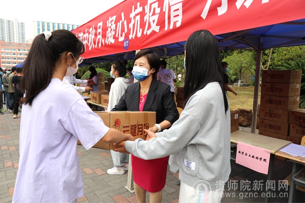 本网讯 一轮明月是对团圆的期盼,一份月饼是学校的浓情厚意。为了让师生们在抗击疫情期间度过一个欢乐祥和的中秋佳节,9月10日,学校开展了向全体在校师生免费发放中秋月饼的活动,给全校师生送去节日的问候和祝福。
