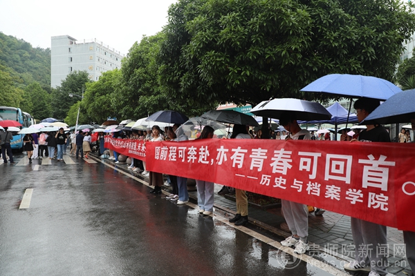 风斜雨细,割不断深厚情谊。学校为毕业生们准备专车,将同学们分别送往火车站、客运站、高铁站。邹晓青暖心询问毕业生的乘车方向,并送上真挚祝福。校园文明督查队、各学院学生会积极热情地为毕业生指引上车点和搬运行李。前来送别的同学拉起横幅,为离别的学长学姐送上了一曲曲骊歌,衷心祝愿毕业生们前程似锦,一帆风顺。中午1点,车辆缓缓开动,邹晓青以及各位老师与毕业生们一一告别,毕业生们眼含热泪,轻轻挥手道别,带着母校的期望,带着大家的叮咛和祝福,满怀依依惜别之情,满怀对未来的美好憧憬,启程步入新的人生征途。