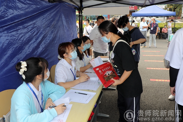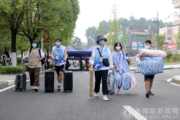 迎新当天,学校志愿者已抵达了指定位置,他们充满热情,怀着诚挚的爱心去迎接每一位新师院人的到来,随处可见忙碌的身影。在校外,他们在金阳客车站、贵阳东站、贵阳北站、贵阳火车站和龙洞堡机场设立接待点等候新生们的到来;在校内报到现场,他们通过引导帮助新生完成从报到到入住的整个流程。