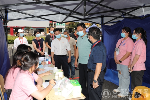 石培新、韦维、郭文视察迎新现场