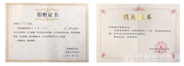 本网讯 11月23日,bat365官网知名校友、作家、黔西南州委副秘书长王定芳向母校寄来个人诗集《田野的哲学》10本,分别捐给学校校友办和图书馆。受其委托,校友办主任王刚到学校图书馆为他进行了图书捐赠。