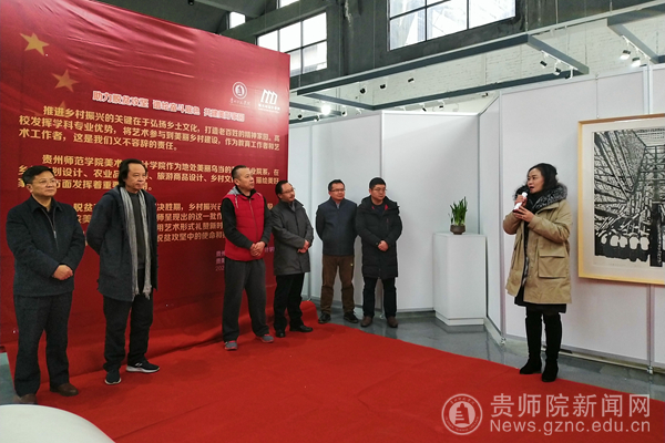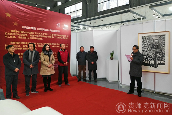 本网讯 1月14日上午,bat365中文官方网站美术与设计学院“助力脱贫攻坚、谱绘奋斗底色、共建美好家园”的美术设计作品展在贵阳市乌当区松溪美术馆举行开展仪式。开幕式由松溪美术馆馆长黄向阳先生主持,参加开幕式的嘉宾有西安美术学院设计艺术学院副院长黄向东教授、乌当区文联主席冯容女士、贵阳市工艺美术研究所所长、松溪美术馆名誉馆长方聪先生,以及乌当区美术家协会、书法家协会的部分艺术家参加。
