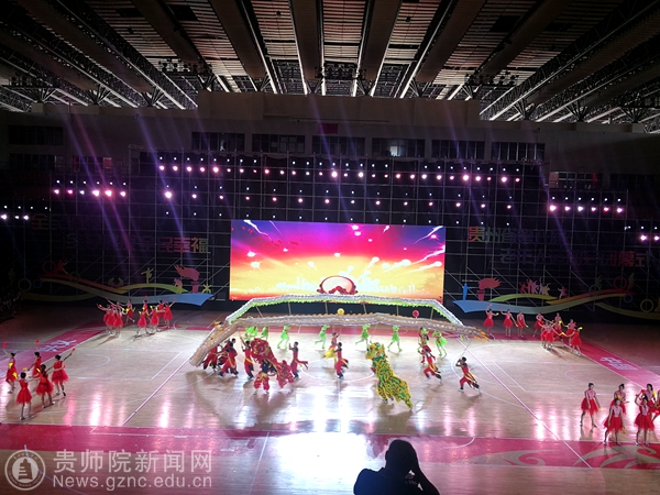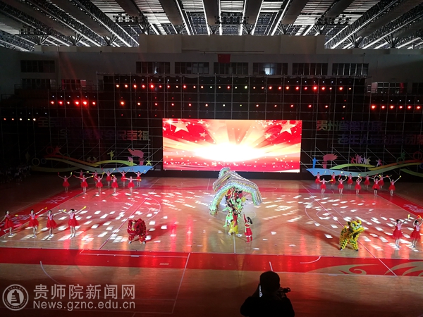 bat365官网龙狮队受黔西南州体育局之邀参加闭幕式,由黄伟明院长、张昕老师及卢霞、张国祥两位助教同学带队参加了此次闭幕式表演。作为第一个开场的节目,主持人隆重介绍了bat365官网的发展和龙狮队伍所取得的成绩。在舞台上龙狮表演套路编排新颖,音乐节奏感强,动作精彩,栩栩如生、惟妙惟肖。龙时而腾飞、时而婉转、时而追珠。狮子时而惊疑、时而嬉戏、时而活灵活现。龙狮的精彩表现赢的了台下的观众阵阵叫好和热烈的掌声。表演结束时龙狮摆出“70”的数字,来为新中国成立70周年献礼,也祝愿伟大的祖国越来越美好。