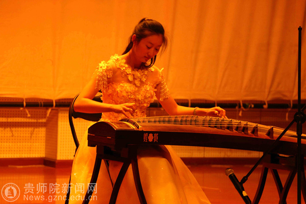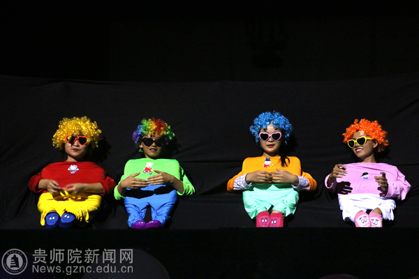 由教育科学学院带来的舞蹈《誓言》给人美的享受。同学们穿着绿色的军装,戴着红色的军帽,跳着优美的舞姿,这都是他们表达爱国情怀的方式。与此同时,由贵阳实验中学尹琪、孙彬等老师以及40名学生带来的集体朗诵《祖国啊,我亲爱的祖国》更是深入人心。他们时而以深沉地回顾着祖国曾经的艰难岁月,时而自豪、激昂地歌诵着祖国繁荣发展,跌宕起伏的朗诵令全体观众荡气回肠,向全体观众展示了他们对祖国深深的热爱,