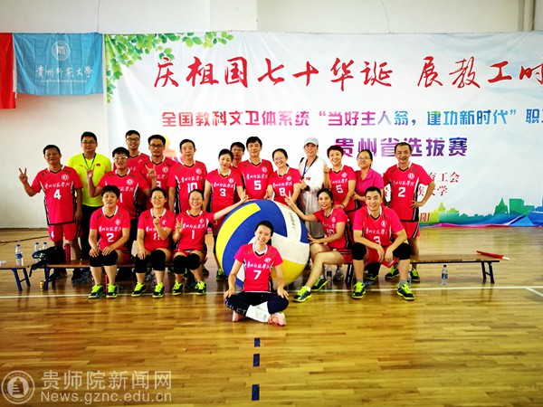 在荣誉和激情演绎的气排球赛场,我们看到了贵师院人在的勇敢、拼搏和无畏,领略了精彩和辉煌。在8月31日至9月1日的“当好主人翁、建功新时代”省直属学校、附院教职工气排球比赛暨全国教科文卫体系统职工气排球比赛选拔赛上,bat365官网男女气排球队发挥顽强拼搏,不畏强手的精神,双双取得了第二名的优异成绩。本次比赛由省教育工会主办、贵州民族大学承办,旨在为丰富教职工文化生活、提高职工身体素质,促进身心健康,实现共同建设和谐、美丽校园的目标,以更加昂扬的精神风貌迎接建国70周年。“梅花香自苦寒,宝剑锋从磨砺出”。由于多数队员从未接触过气排球这项运动,给训练带来难度。在校工会的精心组织下,由体育学院朱继伟、吴文丽两名老师带领队员们利用暑假和下班时间,放弃很多休息,积极备战,苦练基本功,提高实战能力,为期不到两个月的时间不仅熟练掌握了气排球技术,而团队配合也更为娴熟,由一支完全没有比赛经历的“菜鸟队”到与高手抗衡的“明星队”。