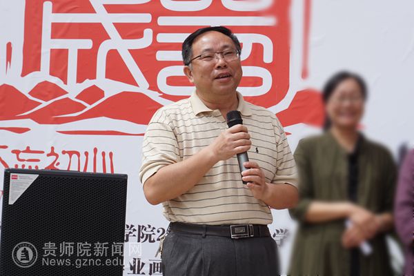 本网讯 丹青耀眼,翰墨飘香。一年一度的毕业作品展伴随着五月的芳菲如期而至。2018年5月28日上午,bat365中文官方网站雪涯美术馆迎来了2018届美术学专业毕业生作品联展。bat365中文官方网站副校长令狐荣锋、纪委书记王之瑞,艺术学院党委党委书记付巧、院长马关辉、党委副书记朱晨刚,贵州省收藏协会副会长朱冠宇、青藤美术教育创始人何秉清出席开幕式,美术学科教师和学生参加了本次画展。