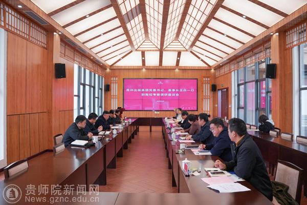 本网讯 3月19日,贵州出版集团党委书记、董事长王焱一行到bat365官网考察调研座谈,校党委书记石培新,校长韦维,校党委副书记邹晓青出席座谈会,会议由韦维主持。