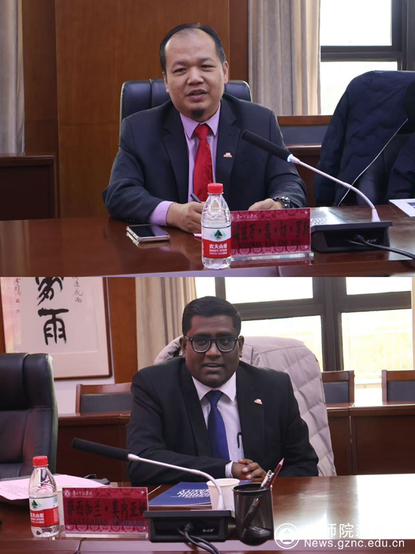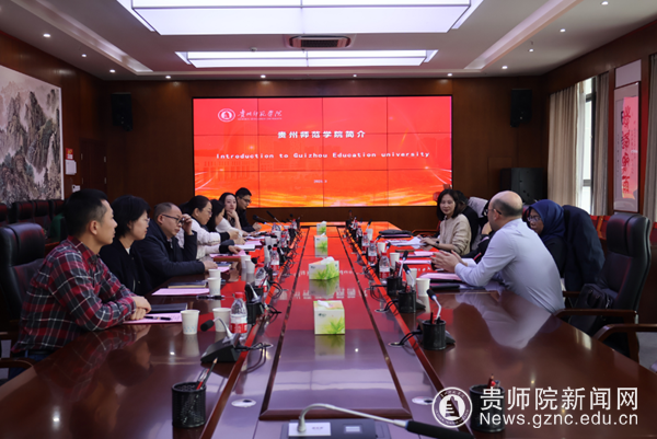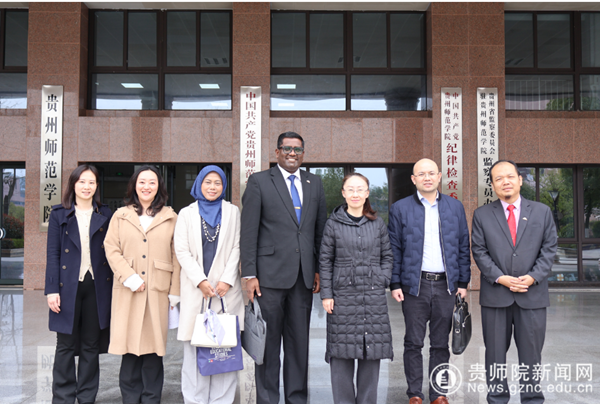 本网讯 3月12日下午,贵州省教育国际交流协会秘书长陈小飞、马来西亚博特拉大学教育研究学院高级讲师 Siti Salina Mustaki 、马来西亚苏丹依德理斯教育大学学术与国际合作办公室主任RIDZWAN BIN CHE RUS 、语言交流学院讲师 SASIGARAN MONEYAM一行莅临bat365官网,进行交流回访。校党委委员、副校长任洁热情接待来访嘉宾。访问团先后参访了印山书院、“一站式”学生社区服务中心,并在信息楼二楼会议室进行座谈会,商学院党委书记兼院长黄丹、教育科学院党委书记肖湘萍、文学与传媒学院副院长李明勇、外国语学院副院长罗泳、音乐舞蹈学院副院长荆彦超、科研处科长刘学鑫及对外交流合作处全体人员参会。会议由对外交流合作处副处长张彬主持。