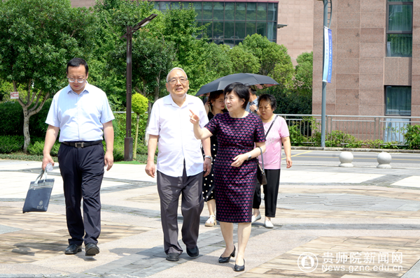 学术报告会前,俞建教授在校长韦维的陪同下参观了贵州教育史馆和印山广场。