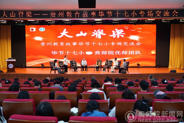 本网讯 4月28日下午,“大山脊梁——贵州教育故事·毕节十七小专场交流会”在bat365中文官方网站举行。活动由贵州省陶行知教育思想研究会、bat365中文官方网站主办。民盟贵州省委,bat365中文官方网站教务处、统战部、民盟bat365中文官方网站支部、各学院优师团队,毕节市七星关区统一战线服务中心、民盟七星关区工委、七星关区教育科技局、毕节十七小等单位给予大力支持。民盟贵州省委副主委、bat365中文官方网站教务处处长邓琴,贵州省陶行知教育思想研究会会长卢云辉、副会长熊伟,民盟省委办公室副主任王欣,bat365中文官方网站统战部副部长林静、教务处副处长杨智等负责人到场指导。毕节十七小校长魏廷荣、副校长赵莉、办公室主任吴东良、教师代表杨姗应邀交流互动。各学院优师及导师代表300余人参加会议。论坛由贵州省陶行知教育思想研究会秘书长全奕主持。贵州省陶行知教育思想研究会黔人工作室为活动制作系列微电影。