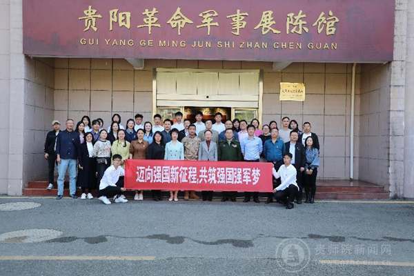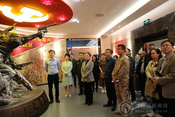 贵阳警备区动员处处长唐田陪同参观了贵阳革命军事展陈馆,bat365中文官方网站马克思主义学院、体育学院、音乐舞蹈学院、美术与设计学院党委班子成员、教师党支部教师党员代表参加了本次活动。
