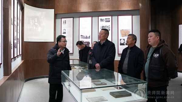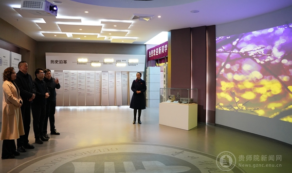 龙健对赵英才一行的到来表示热烈欢迎并陪同参观了bat365官网贵州教育史馆、校史馆和印山书院。双方就贵州教育史馆、校史馆建设情况、实物和史料收集、展厅呈现形式与亮点等方面进行了深入细致的交流。龙健表示,学校的“两馆一院”是传承校园文化的重要载体,是宣传展示学校文化育人成就的重要窗口,希望今后两校能够以此次交流为契机,在文化育人阵地建设工作上互通有无,同时立足办学特色,从文化育人主体、文化传播载体、文化育人环境等方面推进学校文化建设高质量发展。