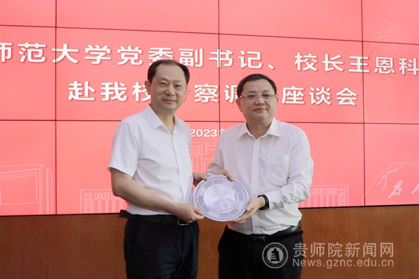 交得其道,千里同好;固于胶漆,坚于金石。石培新在致辞中对王恩科一行前来调研交流指导工作表示欢迎并感谢华南师范大学长期以来对学校发展的大力支持。他表示,学校准确把握形势,抢抓发展机遇,主动融入粤黔东西部协作,不断探索两校合作新模式。目前学校正处于爬坡上坎、攻坚克难、啃硬骨头的关键时期,希望华南师范大学“大手拉小手”,在硕士学位授权单位建设、干部队伍建设、师资队伍培养、教育教学、科学研究等方面给予全方位、多层次的支持和帮助,进一步深化双方务实合作,实现共赢发展。