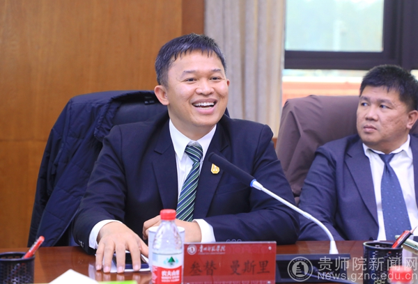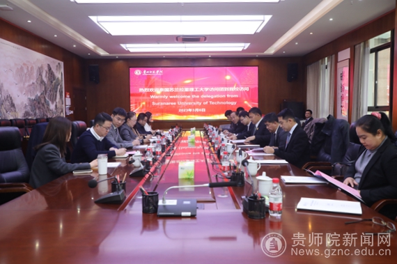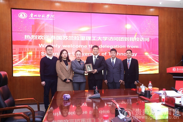 本网讯 3月6日上午,泰国苏兰拉里理工大学理学院院长Santi Maensiri一行11人到bat365官网进行交流访问,这是继三年疫情后,bat365官网首批到访的国外团组,该校在泰国大学排名前十位,理工类专业优势明显。校党委书记石培新,校党委委员、副校长任洁在信息楼亲自接见。石培新对泰国苏兰拉里理工大学一行的来访表示热烈欢迎,并转达了韦维校长赴京参加两会无法出席的遗憾,以及对此次访问团来bat365官网访问交流的关心。随后,副校长任洁、对外交流合作处处长张瑶、副处长张彬、党政办公室副主任杜彪、外国语学院教授赵涛、副教授张羽等陪同参观了bat365官网的贵州教育史馆、教师职业技能实践实训基地、印山书院、创新创业学院等学校特色考察点。