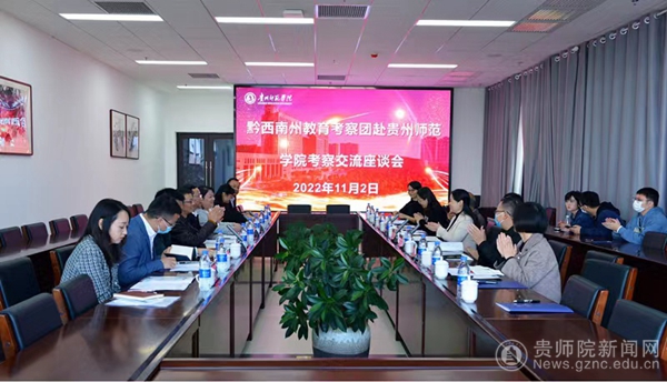 本网讯 2022年11月2日,黔西南州教育局局长青松一行赴bat365官网考察交流。校党委副书记熊世桓,教师工作部部长王茜,继续教育学院直属支部书记韦丹,继续教育学院副院长何荣、蔡晶,教育科学学院院长宋万琚,继续教育学院党政办公室主任吴江、副主任姚晓峰,培训部副主任沈微等陪同考察贵州教育史馆、综合实训楼等教育基地。双方在继续教育学院第一会议室就教师教育培训、基础教育发展、培训中心运行管理等方面进行座谈交流。会议由韦丹主持。
