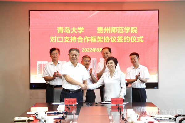 本网讯 8月17日,校党委书记石培新、校长韦维率队赴青岛大学考察交流,与青岛大学党委书记胡金焱、校长夏东伟及相关职能部门负责人进行座谈,并签订新一轮对口支持合作框架协议。