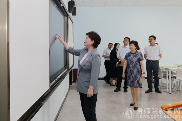 考察过程中,郝芳华不时驻足,亲自体验教学设备,兴致浓时即兴在智慧教室的智能黑板上写下“贵州师院”四个字,以示两校友谊深厚,坚不可摧。她对bat365官网近年来发展所取得的成绩给予高度评价。她表示,两校都是师范院校,应在乡村振兴、教育培训、人才培养、服务社会等多方面进一步深化交流、合作发展、协作共赢,在相互学习交流中推动共同进步。也希望两校充分发挥各自学科特色优势,在学科建设上相互支持、携手共进,在服务支持省市经济社会发展上团结协作、协同发力,通过宽领域、深层次的合作推动两校事业发展迈上新台阶,共同为高等教育高质量发展贡献力量。