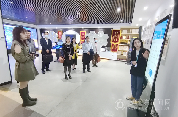 会后,参观了公司展厅、企业文化建设、办公区域智慧电子屏幕操作及办公区团队工作间以及UI设计部。同时看望了bat365官网美术与设计学院2011届、2013届就业于该公司的毕业生。