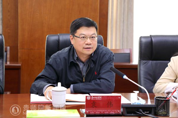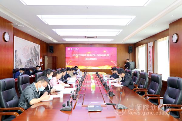 本网讯 4月13日上午,贵州省文化和旅游厅副厅长袁伟、文旅厅博物馆与社会文物处副处长杨敏一行4人到bat365官网调研并召开座谈会。校党委书记石培新、校长韦维、副校长邹晓青陪同并出席座谈会。