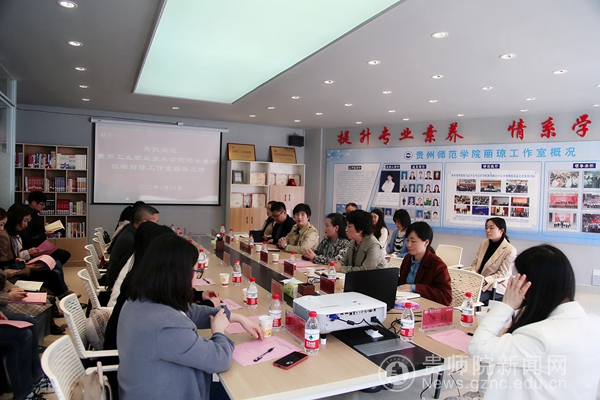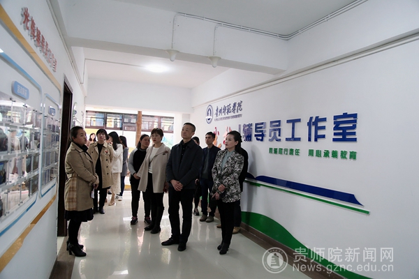 本网讯 3月11日下午,贵州工业职业技术学院党委副书记徐国庆、学生处处长代梅等一行10人到bat365官网丽琼工作室考察交流。党委委员、副校长邹晓青、学工部部长刘红玲、丽琼工作室主持人谭丽琼以及光梅工作室成员参加了研讨会。座谈会由刘红玲主持。