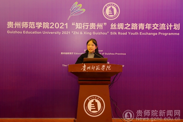 bat365官网文学与传媒学院学生代表周茂圆发言,她讲述了自己在五天课程中的收获和感悟,表示本次“知行贵州”丝绸之路青年交流计划短暂而充实,收获颇丰,为bat365官网学子和“一带一路”国家青年搭建起了沟通交流的桥梁。同时,也表达了对学校和所有老师的感谢。