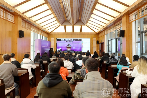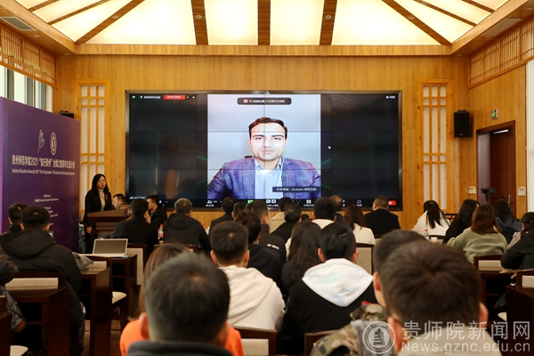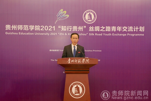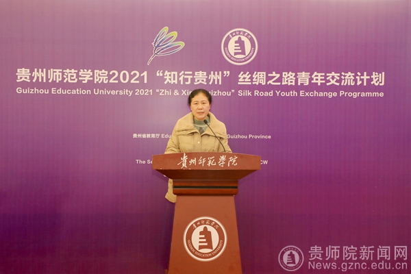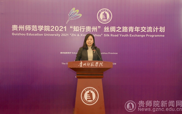 贵州省教育厅党组成员、省教育工会主席王慧致辞。王慧指出,“知行贵州”丝绸之路青年交流计划是中国——东盟教育交流周旗舰项目,每年资助上百名“一带一路”青年学子到贵州研学,走进贵州、了解贵州、发现贵州,通过此类活动不断深化中国-东盟教育交流周内涵建设,提质增效做实教育国际交流合作项目,推动贵州教育对外开放再上新台阶,助力“留学贵州”品牌建设。王慧表示,希望各位学员在‘知行贵州’这个平台,沉浸式地感知中国文化、体验多彩贵州,客观真实地了解中国、了解贵州,加深互动、增进友谊,达到“知”与“行”的统一。