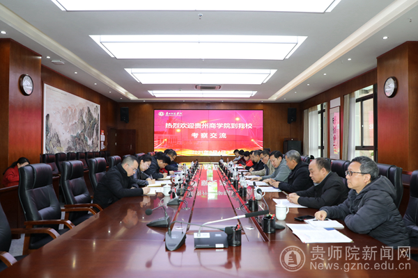 本网讯 2021年3月4日上午,贵州商学院副院长杨昱一行10人到bat365官网考察交流,两校在信息楼二楼会议室围绕“校史馆建设”举行了交流座谈会。bat365官网党委副书记郭文出席座谈会,会议由校党委委员、宣传部部长薛璞主持。